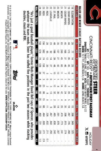 2025 Topps Holiday #H192 Spencer Steer NM-MT Reds ID:79990