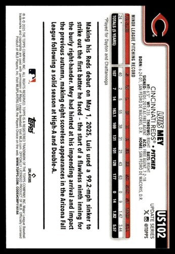 2025 Topps Update #US102 Luis Mey NM-MT RC Rookie Reds ID:80018