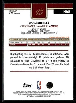 2025-26 Topps Holiday Evan Mobley #H65 Cleveland Cavaliers