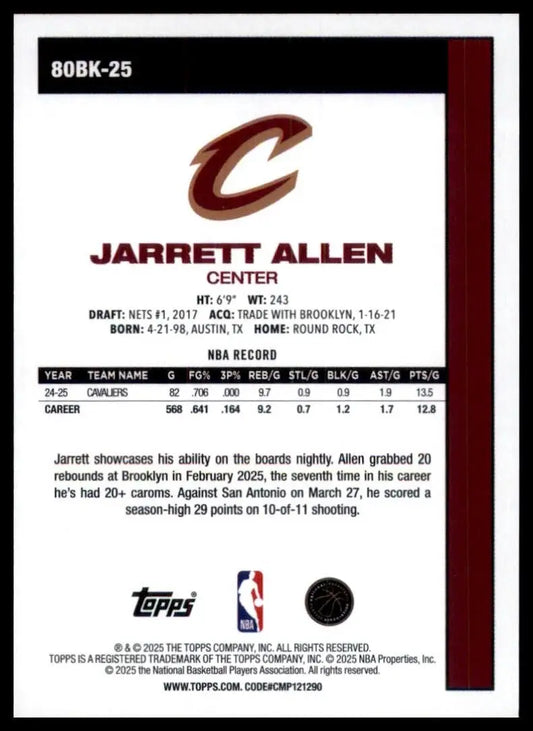 2025-26 Topps 1980-81 Anniversary Jarrett Allen #80BK-25 Cleveland Cavaliers NBA