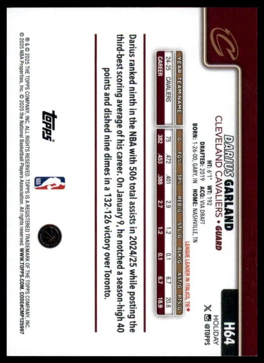 2025-26 Topps Holiday Darius Garland #H64 Cleveland Cavaliers Basketball Card