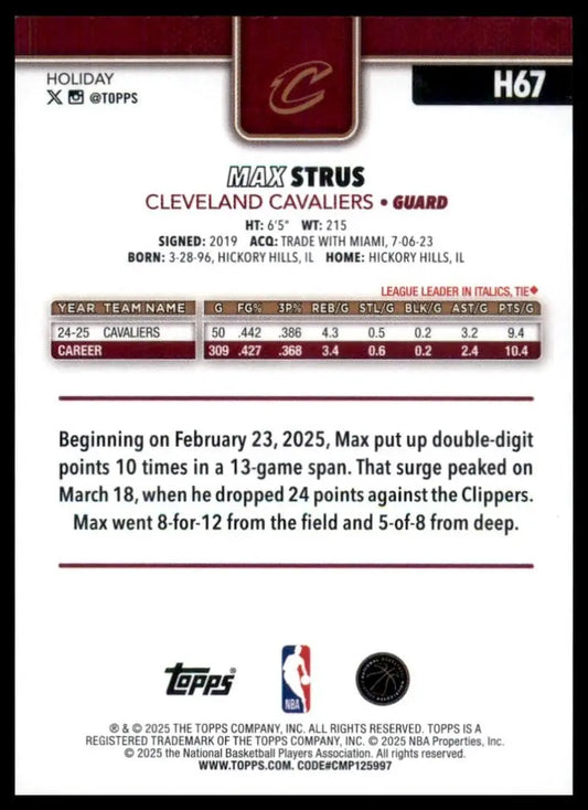2025-26 Topps Holiday Max Strus #H67 Cleveland Cavaliers Basketball Card NBA