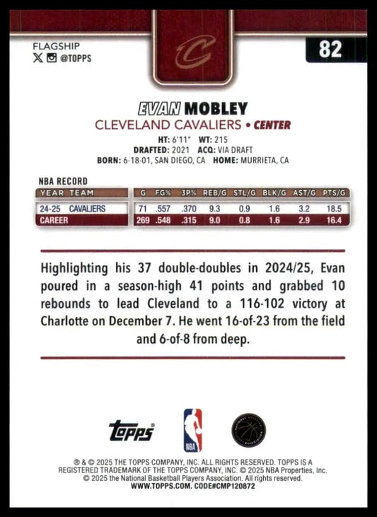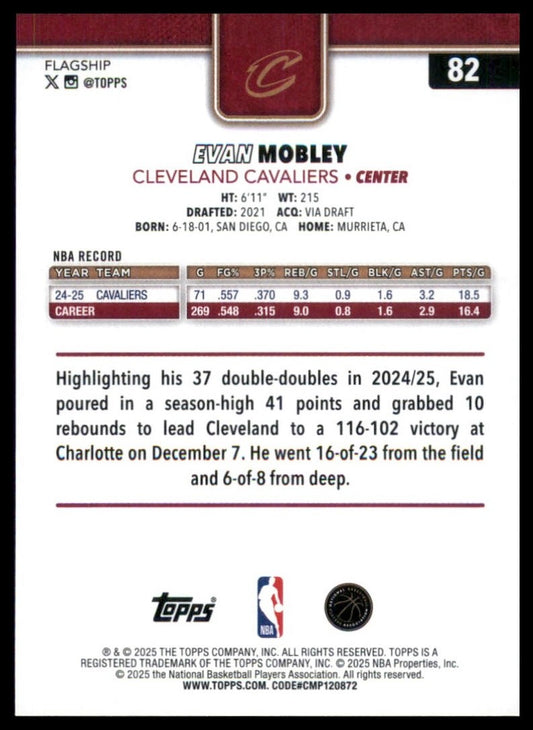2025-26 Topps Evan Mobley #82 Cleveland Cavaliers Basketball Card NBA Sports