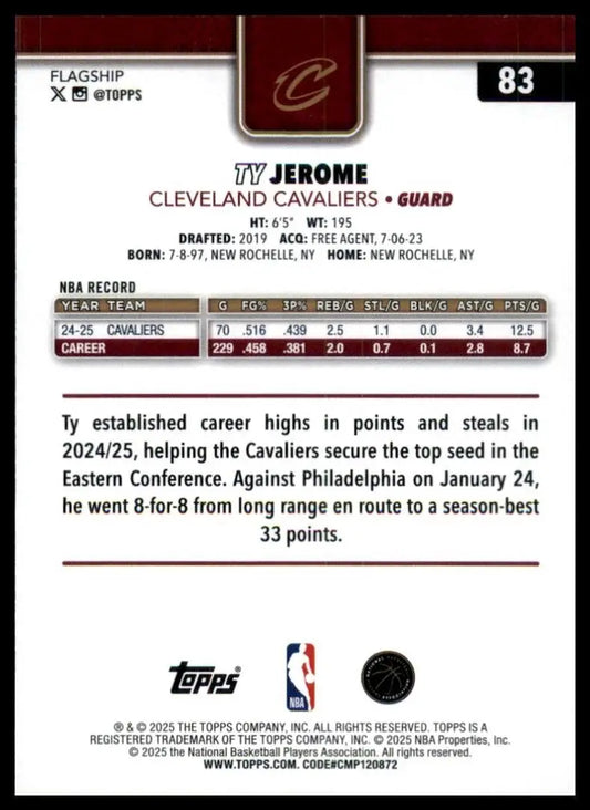 2025-26 Topps Ty Jerome #83 Cleveland Cavaliers Basketball Card NBA Sports