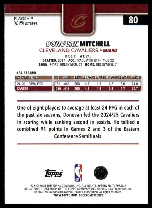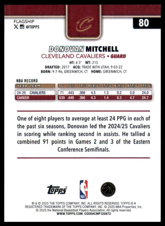2025-26 Topps Donovan Mitchell #80 Cleveland Cavaliers Basketball Card NBA Sport