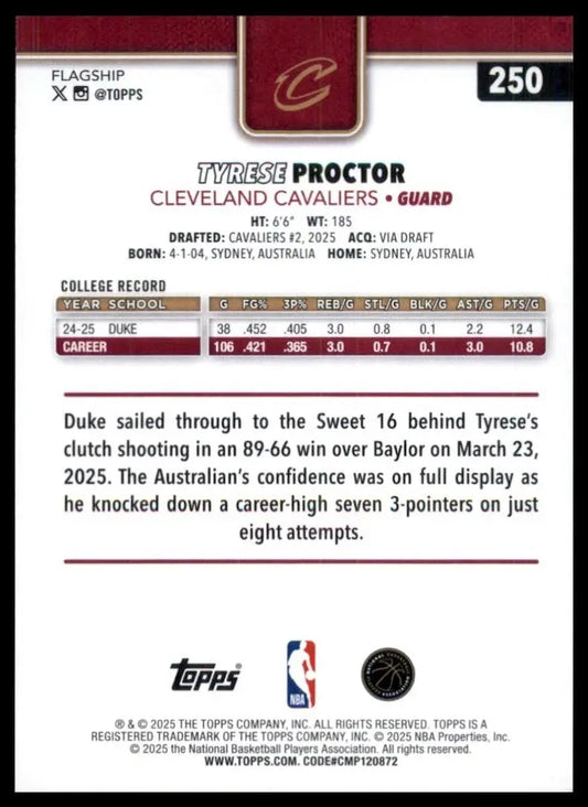 2025-26 Topps Season Tip Off Tyrese Proctor Rookie #250 Cleveland Cavaliers Card