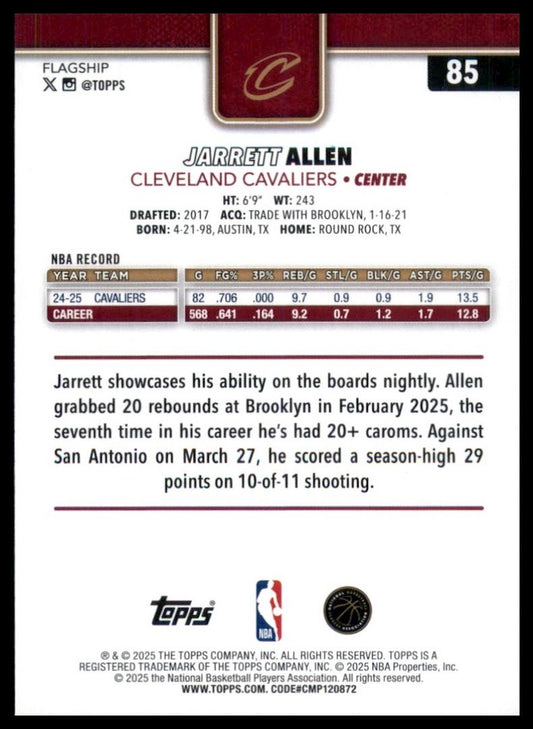 2025-26 Topps Jarrett Allen #85 Cleveland Cavaliers Basketball Card NBA Sports