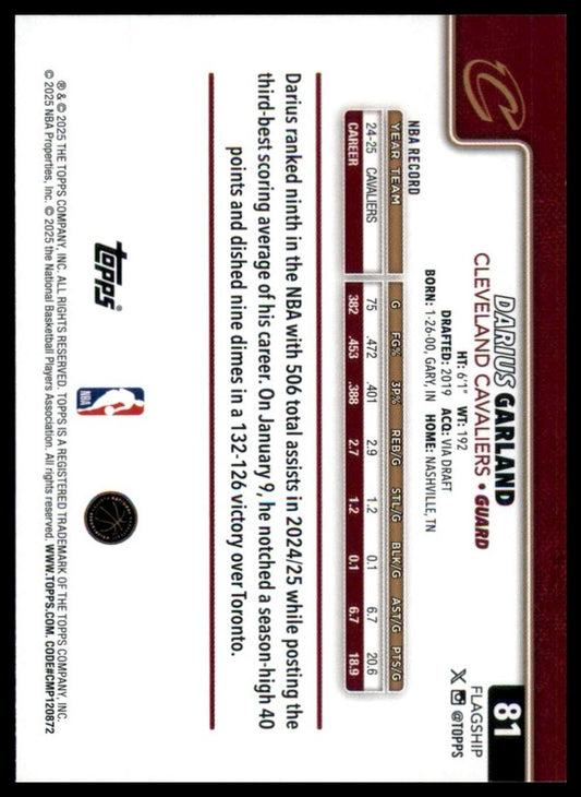 2025-26 Topps Darius Garland #81 Cleveland Cavaliers Basketball Card NBA Sports