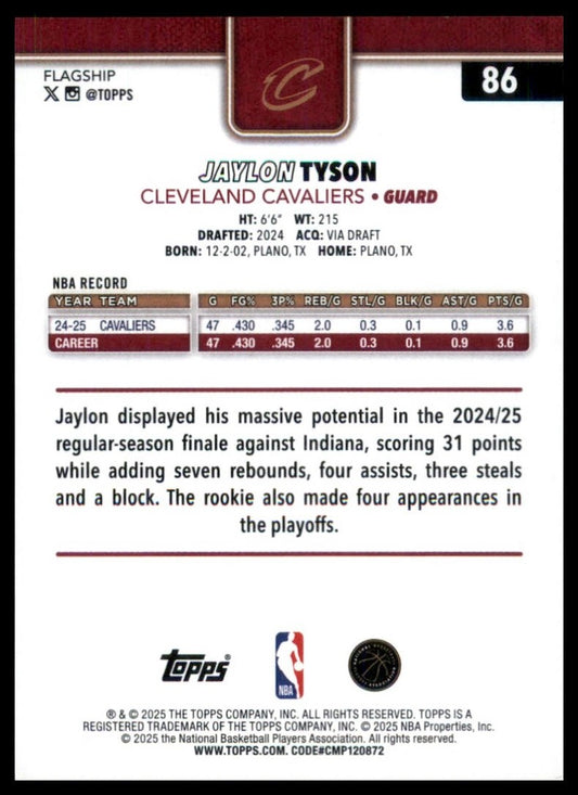 2025-26 Topps Jaylon Tyson #86 Cleveland Cavaliers Basketball Card NBA Sports
