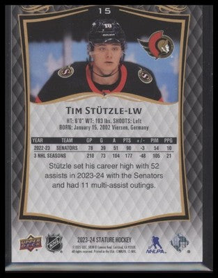 2024-25 Upper Deck Stature Tim Stutzle #15 2023-24 Update - Base Ottawa Senators
