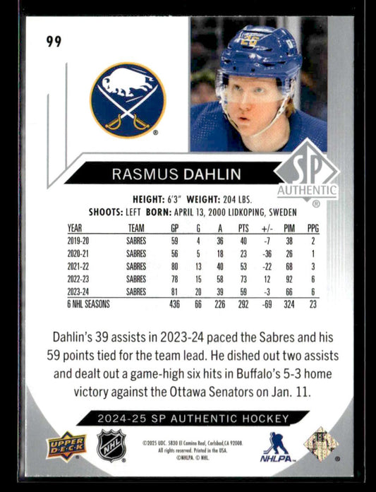 2024-25 SP Authentic Rasmus Dahlin #99 Buffalo Sabres