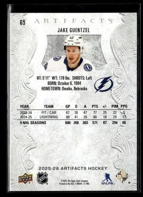 2025-26 Upper Deck Artifacts Jake Guentzel #65 Tampa Bay Lightning