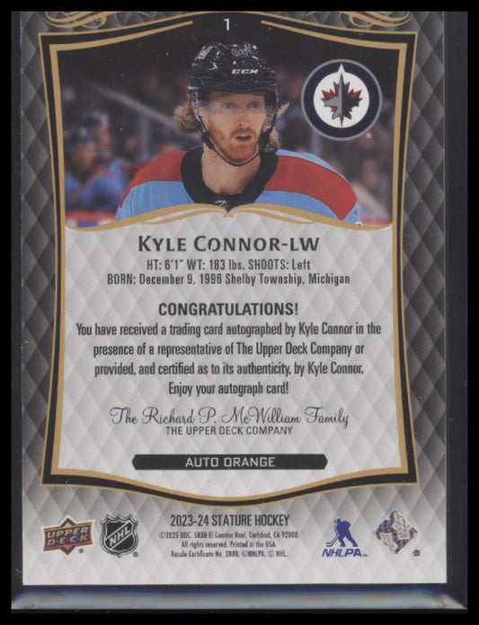 2024-25 Upper Deck Stature Kyle Connor #1 2023-24 Auto Orange #/50 Jets