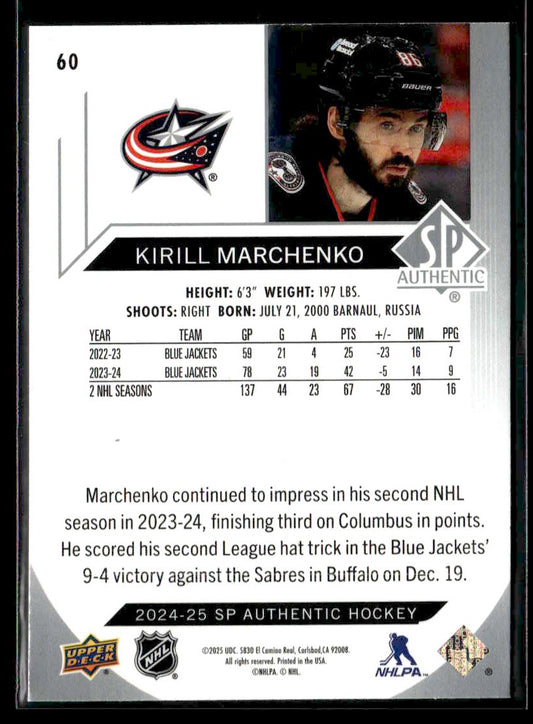 2024-25 SP Authentic Kirill Marchenko #60 Columbus Blue Jackets