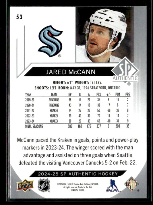 2024-25 SP Authentic Jared McCann #53 Seattle Kraken