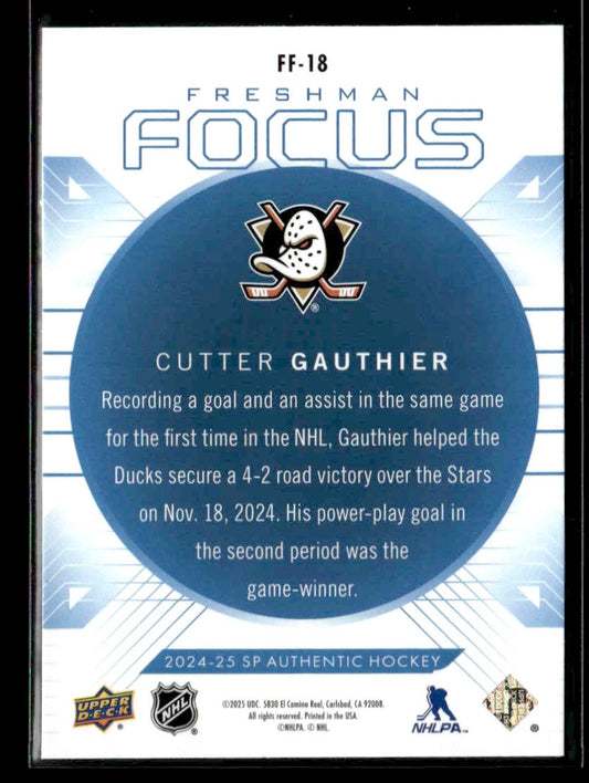 2024-25 SP Authentic Cutter Gauthier #FF-18 Freshman Focus Blue Anaheim Ducks