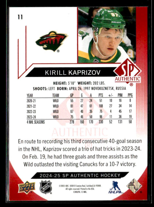2024-25 SP Authentic Kirill Kaprizov #11 Limited Red Minnesota Wild
