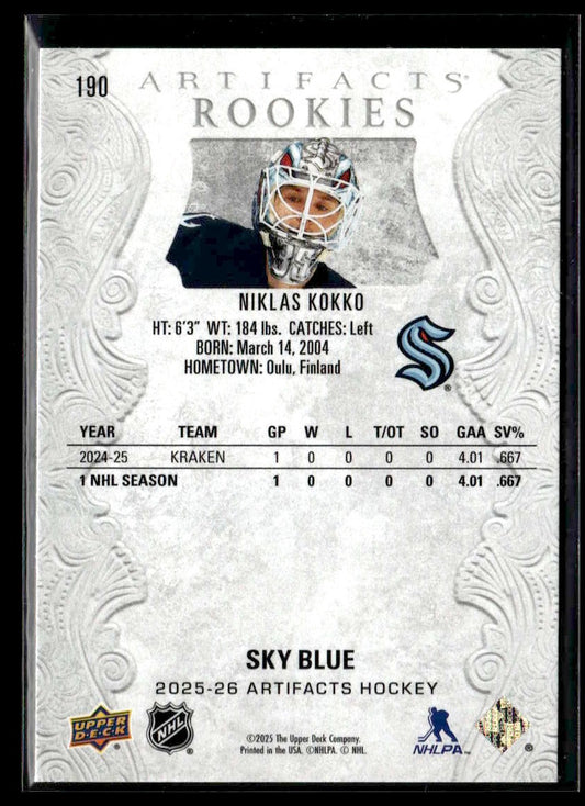 2025-26 Upper Deck Artifacts Niklas Kokko #190 Sky Blue Seattle Kraken