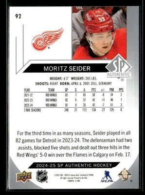 2024-25 SP Authentic Moritz Seider #92 Detroit Red Wings