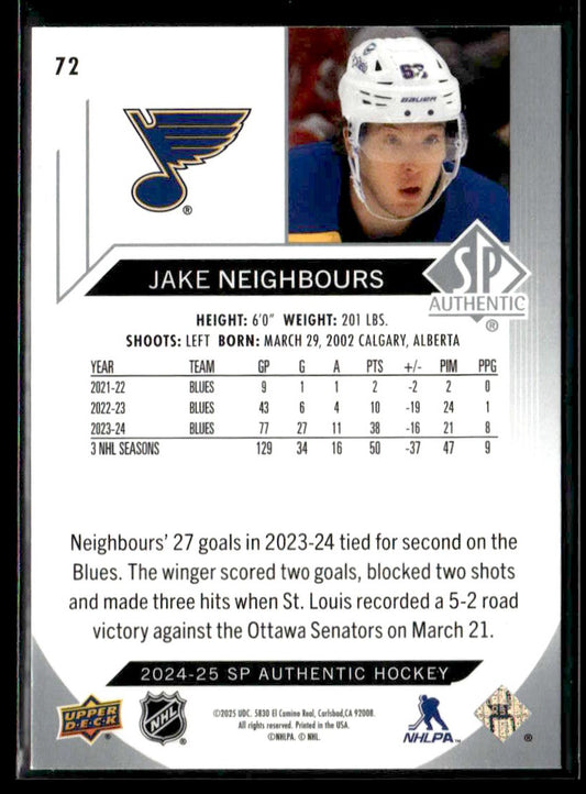 2024-25 SP Authentic Jake Neighbours #72 St. Louis Blues