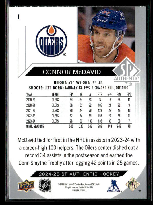 2024-25 SP Authentic Connor McDavid #1 Edmonton Oilers