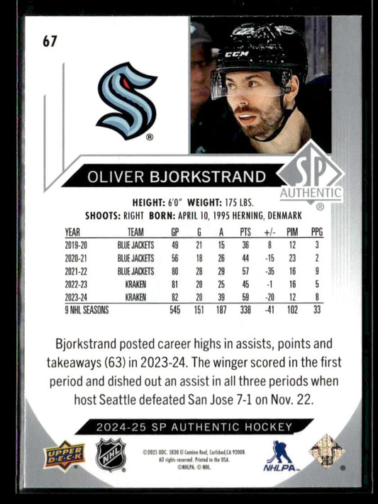 2024-25 SP Authentic Oliver Bjorkstrand #67 Seattle Kraken