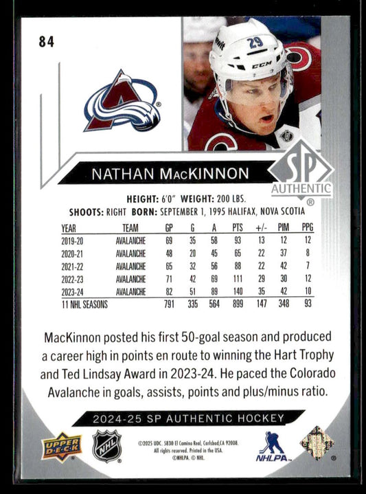 2024-25 SP Authentic Nathan MacKinnon #84 Colorado Avalanche