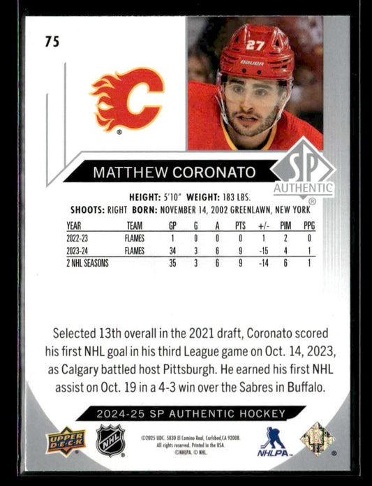 2024-25 SP Authentic Matt Coronato #75 Calgary Flames