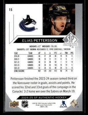2024-25 SP Authentic Elias Pettersson #15 Vancouver Canucks