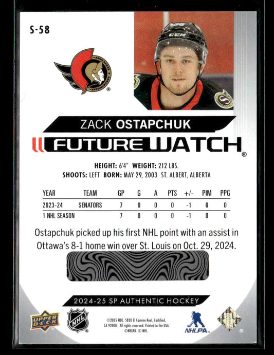 2024-25 SP Authentic Zack Ostapchuk #S-58 Spectrum FX Ottawa Senators