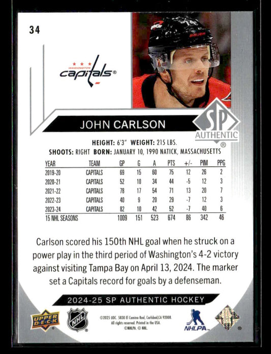 2024-25 SP Authentic John Carlson #34 Washington Capitals