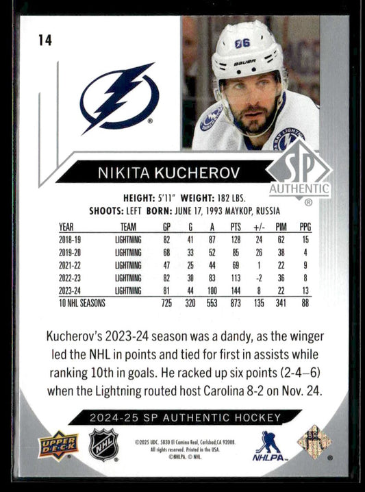 2024-25 SP Authentic Nikita Kucherov #14 Tampa Bay Lightning