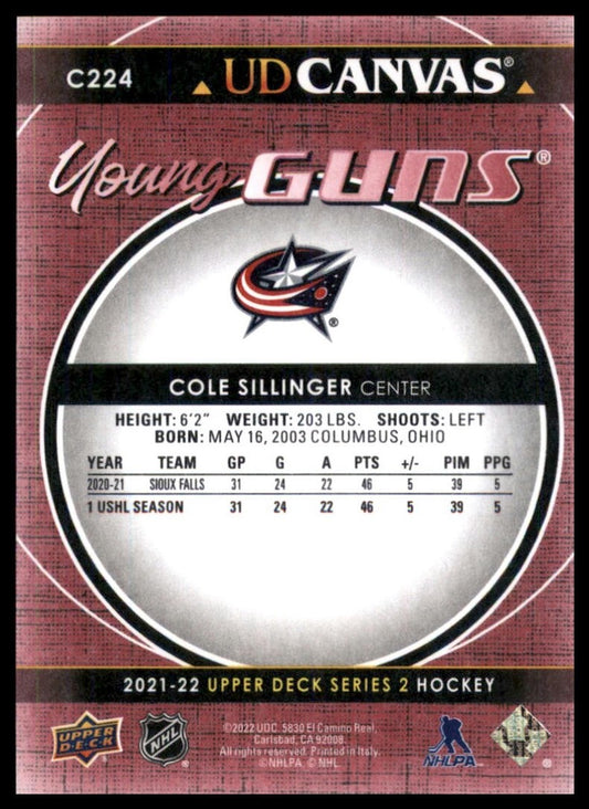 2021-22 Upper Deck Canvas #C224 Cole Sillinger Young Guns Columbus Blue Jackets