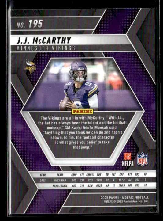 2025 Panini Mosaic J.J. McCarthy #195 Minnesota Vikings