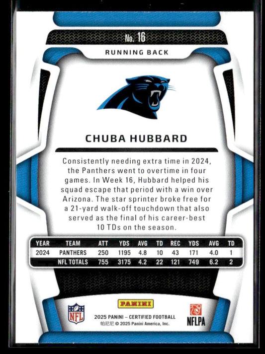 2025 Panini Certified Chuba Hubbard #16 Carolina Panthers