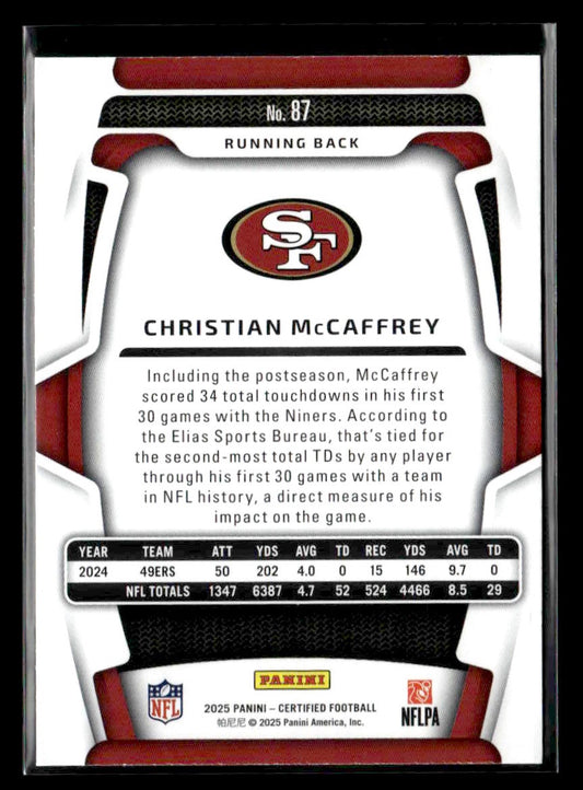 2025 Panini Certified Christian McCaffrey #87 San Francisco 49ers