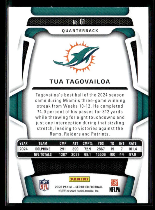 2022 Panini Certified Tua Tagovailoa #61 Miami Dolphins
