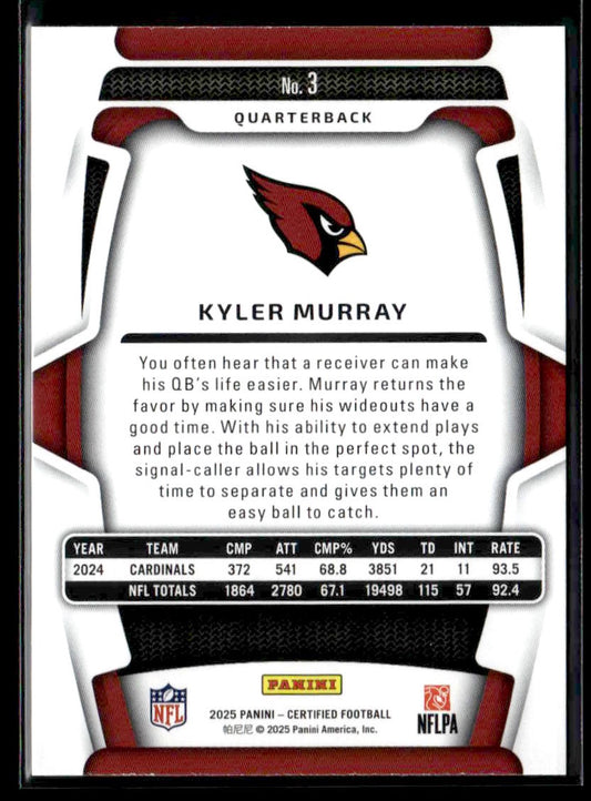 2025 Panini Certified Kyler Murray #3 Arizona Cardinals