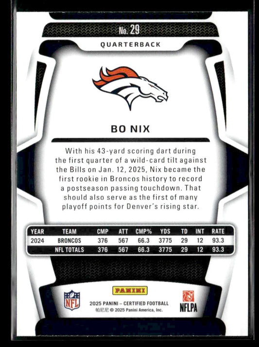 2025 Panini Certified Bo Nix #29 Denver Broncos
