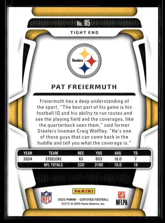2025 Panini Certified Pat Freiermuth #85 Pittsburgh Steelers