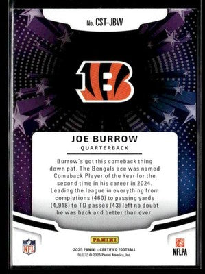 2025 Panini Certified Joe Burrow #CST-JBW Certified Stars Cincinnati Bengals