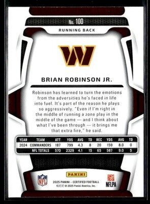 2025 Panini Certified Brian Robinson Jr. #100 Washington Commanders