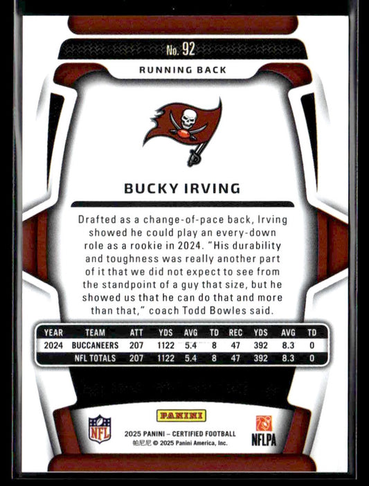 2025 Panini Certified Bucky Irving #92 Mirror Purple SN #/299 Buccaneers