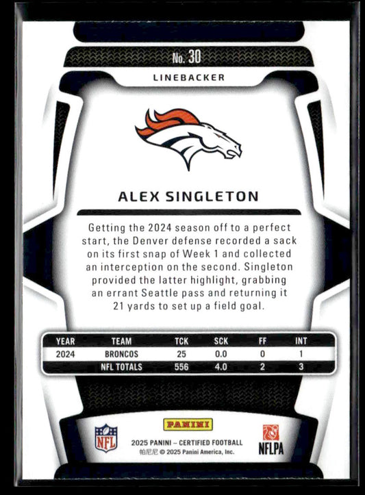 2025 Panini Certified Alex Singleton #30 Denver Broncos