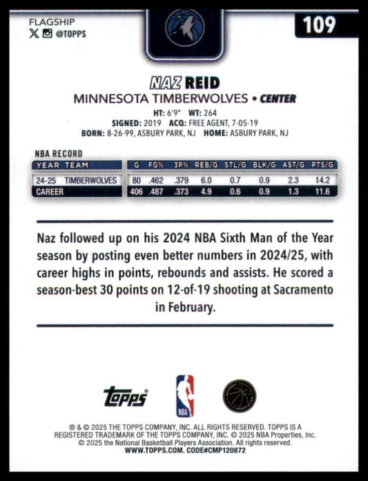 2025-26 Topps Naz Reid #109 Minnesota Timberwolves Basketball Card NBA Sports