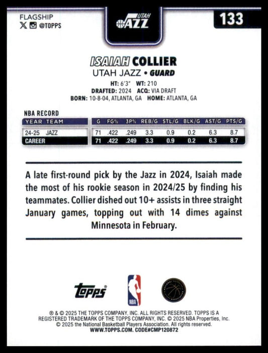2025-26 Topps Isaiah Collier #133 Utah Jazz Basketball Card NBA Sports