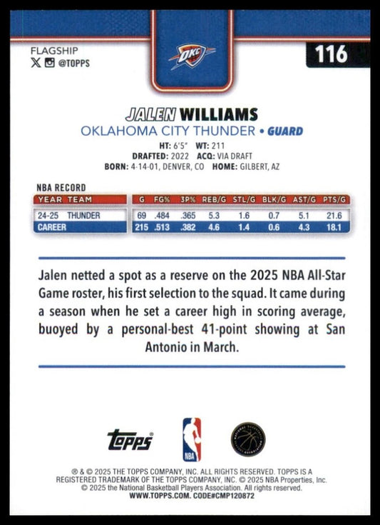 2025-26 Topps Jalen Williams #116 Oklahoma City Thunder Basketball Card NBA