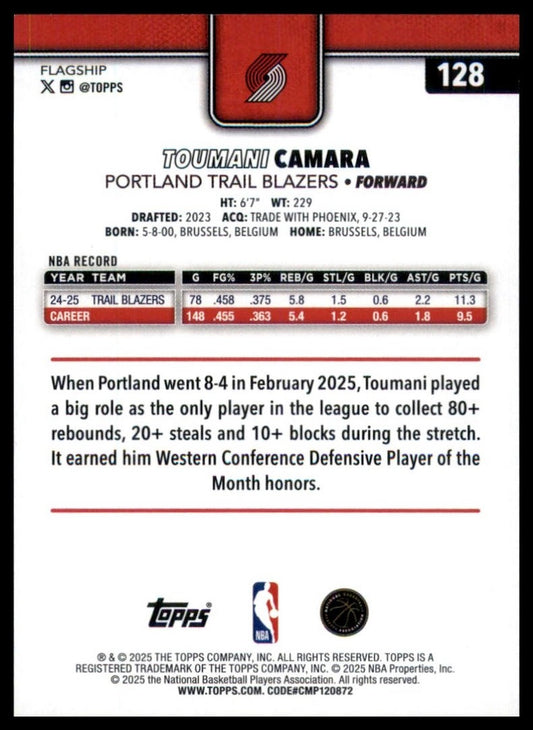 2025-26 Topps Toumani Camara #128 Portland Trail Blazers Basketball Card NBA