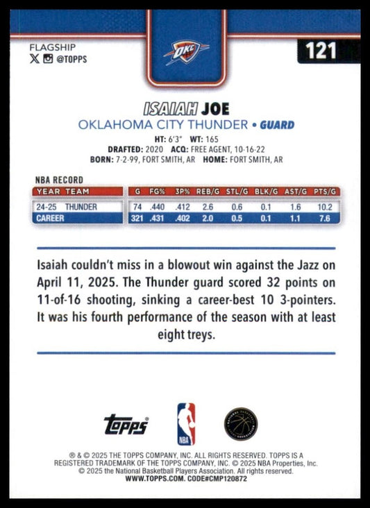 2025-26 Topps Isaiah Joe #121 Oklahoma City Thunder Basketball Card NBA Sports