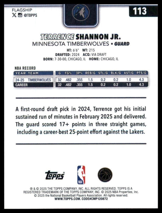 2025-26 Topps Terrence Shannon Jr #113 Minnesota Timberwolves Basketball Card